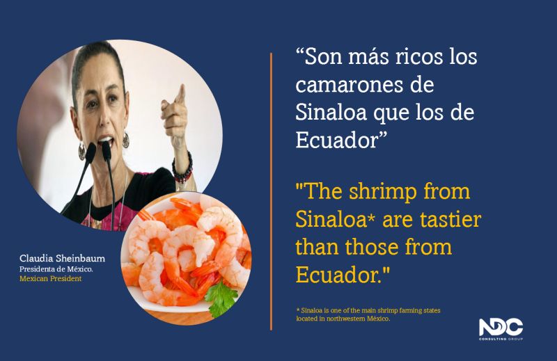 Esta expresiรณn aparentemente hiriรณ los sentimientos de Josรฉ Antonio Camposano, Presidente de la Cรกmara de Acuacultura de Ecuador, quien le respondiรณ “Respetamos el gusto de la seรฑora Sheinbaum, aunque el mundo parece tener uno mรกs refinadoโฆ”